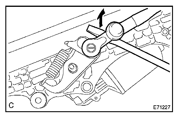 b. Using a screwdriver, disengage the meshing of the rod at the crank arm pivot of the windshield wiper motor assy.