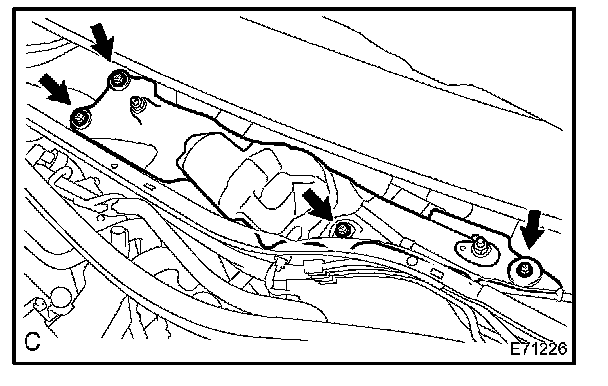b. Remove the 4 bolts and the windshield wiper motor & link assy.