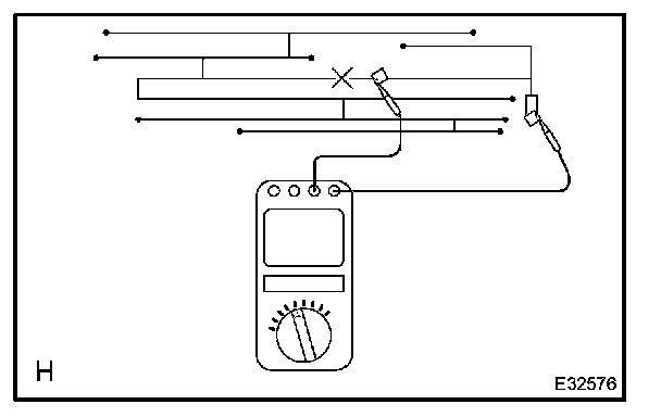 a. Inspect the continuity at the center of each antenna wire, as shown in the illustration.