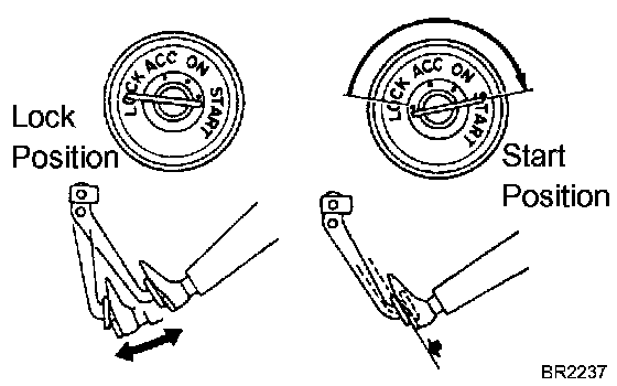 b. Depress the brake pedal and start the engine. If the pedal goes down slightly, operation is normal.