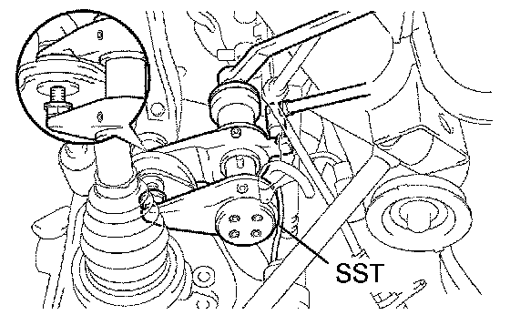 b. Using SST, separate the rear axle carrier sub-assembly LH from the upper control arm assembly rear LH.