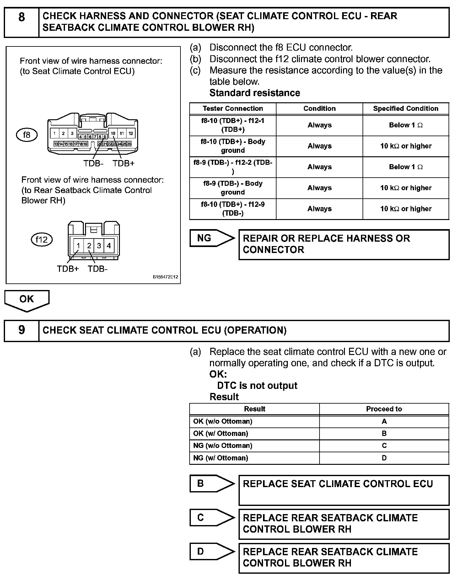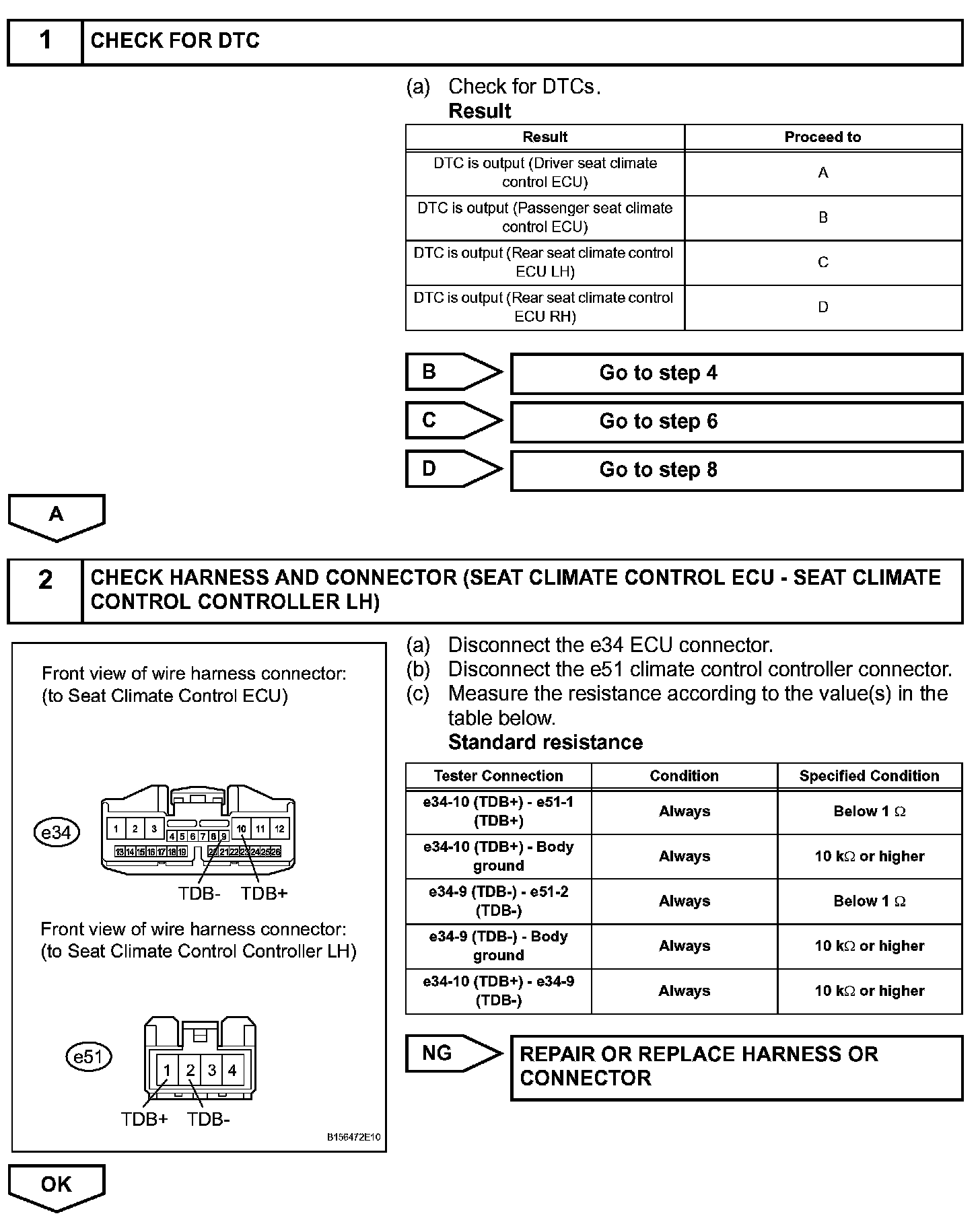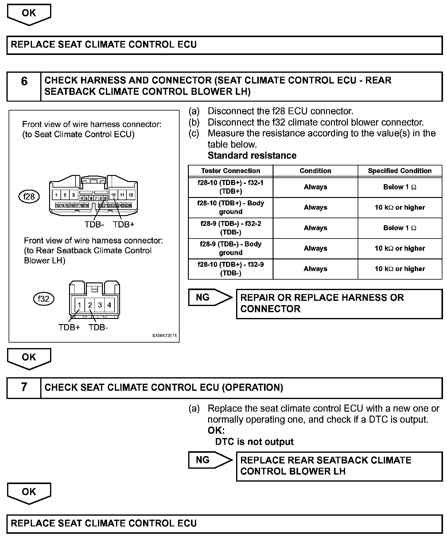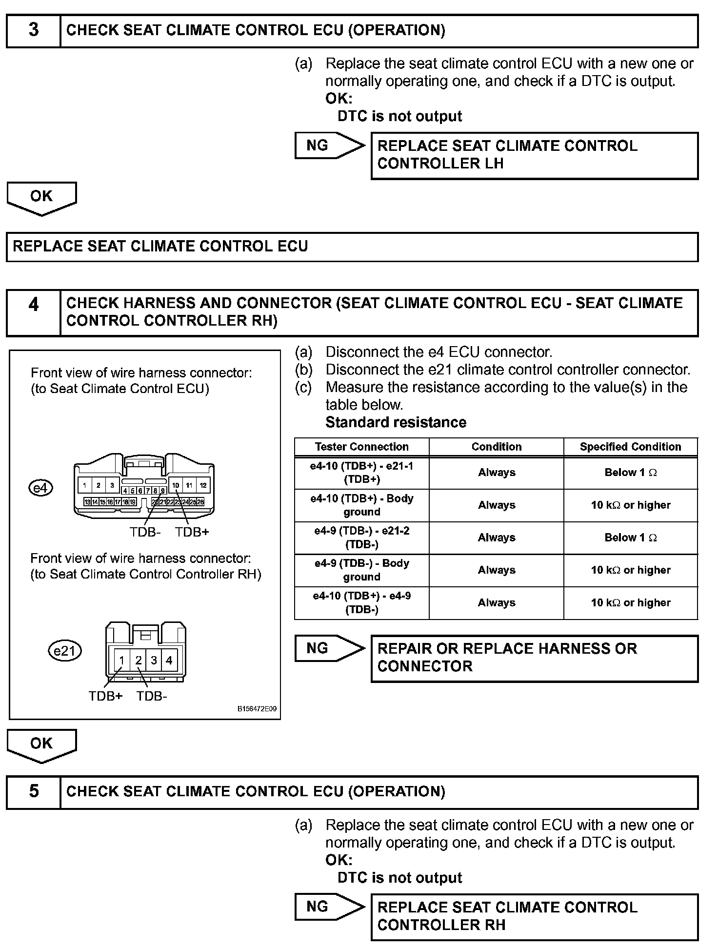 The seat climate control ECU stops outputs to the seat climate control controller if a short, etc. in the seat climate control controller, wire harness or ECU interior circuit causes overcurrent.