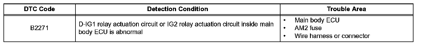 This DTC is output when the IG output circuits inside the main body ECU are open or shorted.