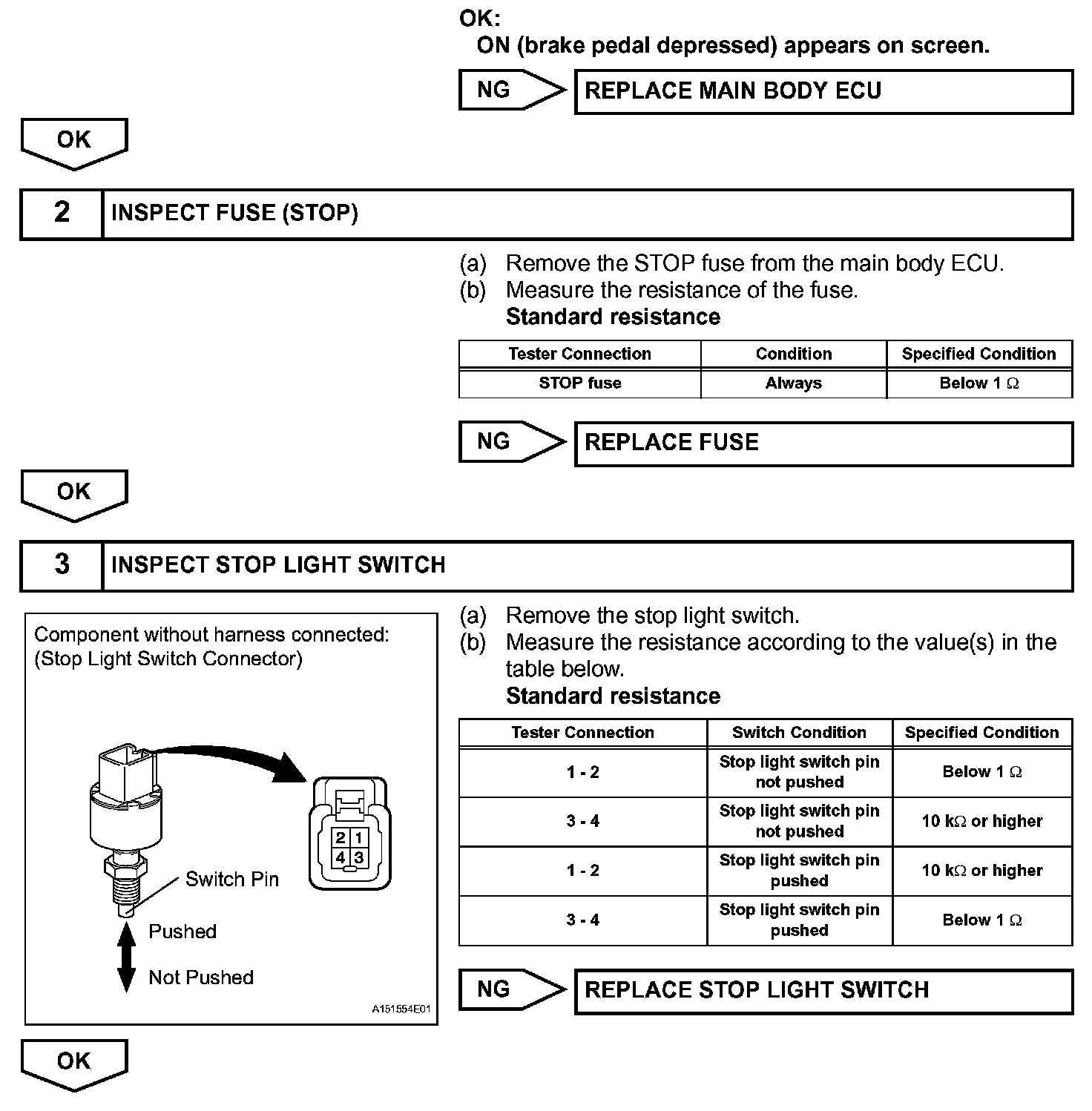 This DTC is output when: 1) the brake signal circuit between the main body ECU and the stop light switch is malfunctioning; and 2) the CAN information is inconsistent.