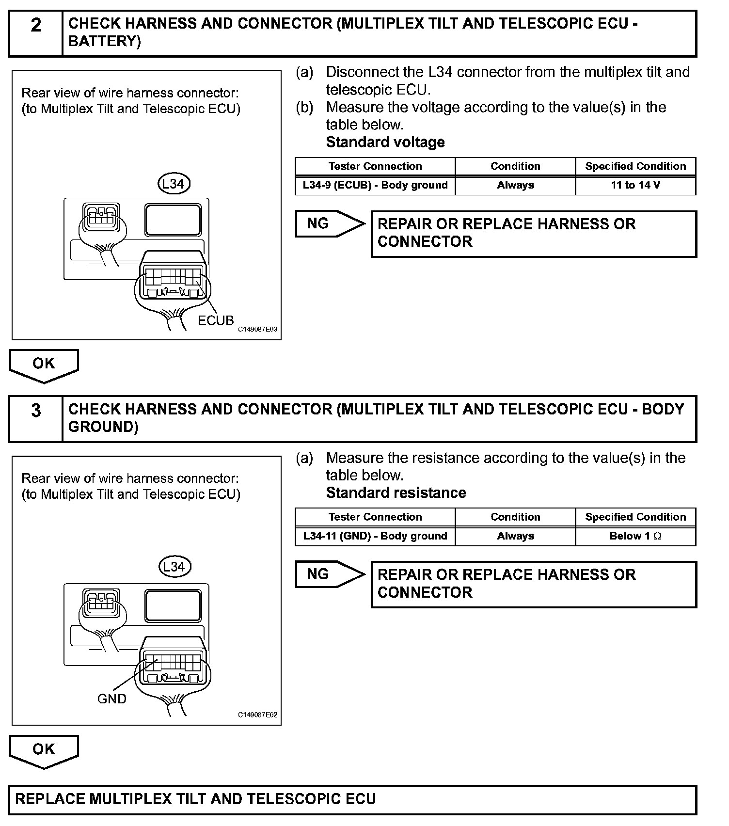 The ECU power source circuit supplies positive voltage to the multiplex tilt and telescopic ECU.