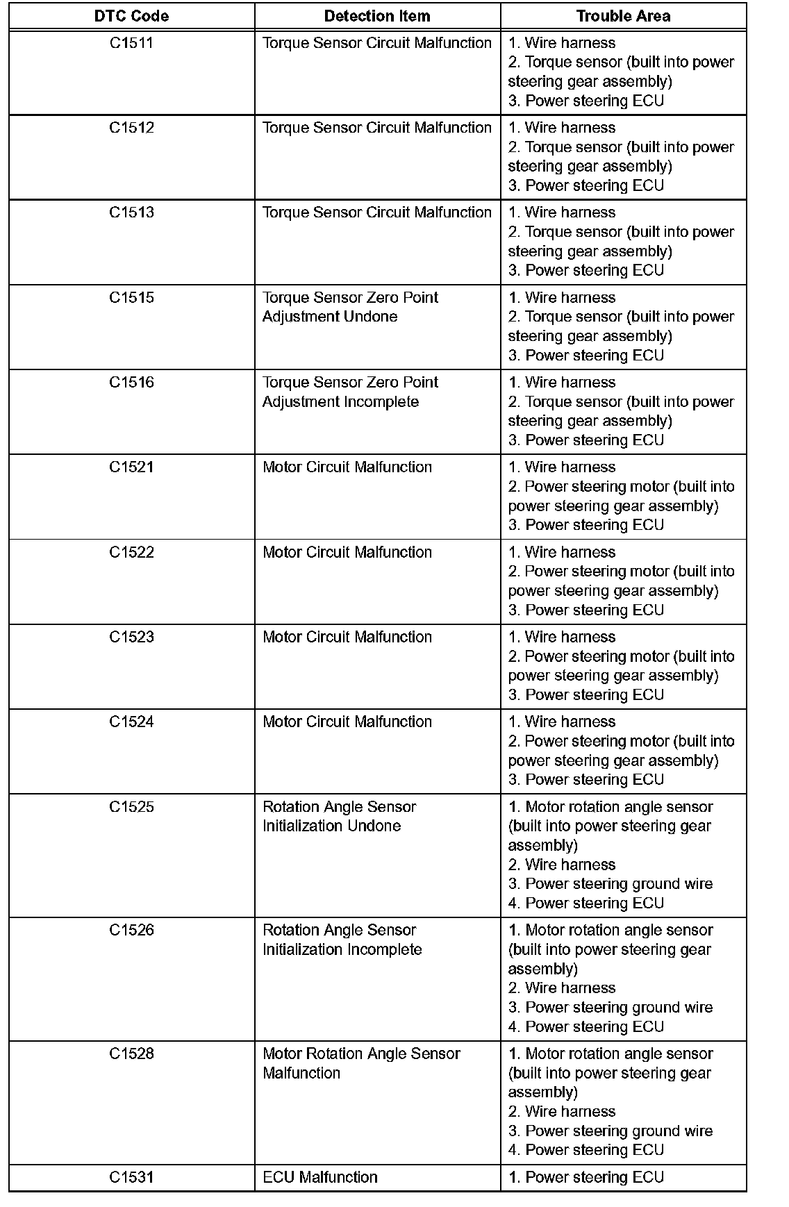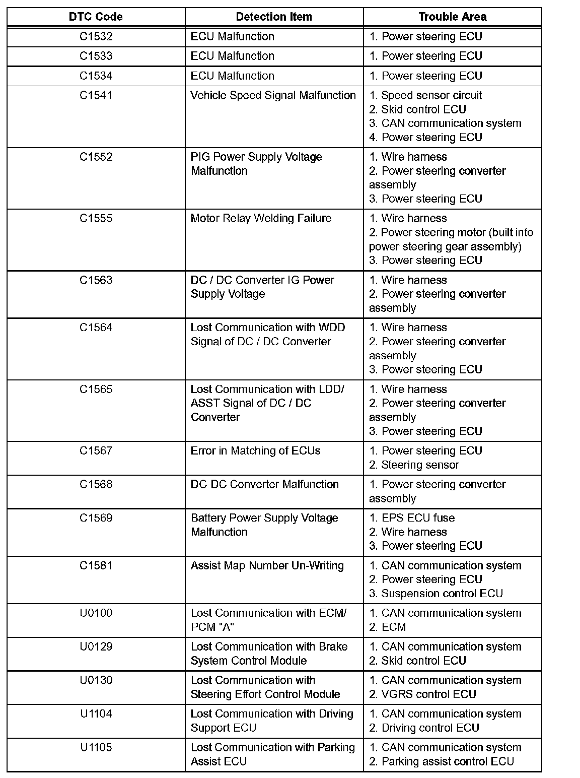 DIAGNOSTIC TROUBLE CODE CHARTHINT: If a trouble code is displayed during the DTC check, inspect the trouble areas listed for that code. For details of the code, refer to the "DTC" below.