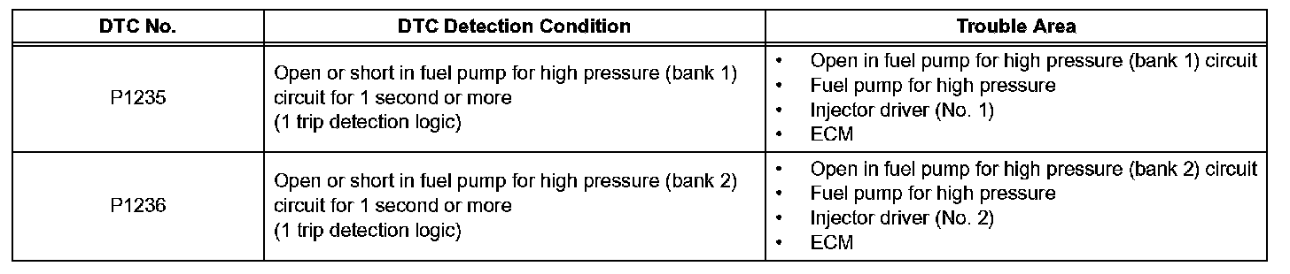 DTC P1235 High Pressure Fuel Pump CircuitDTC P1236 High Pressure Fuel Pump No. 2 Circuit