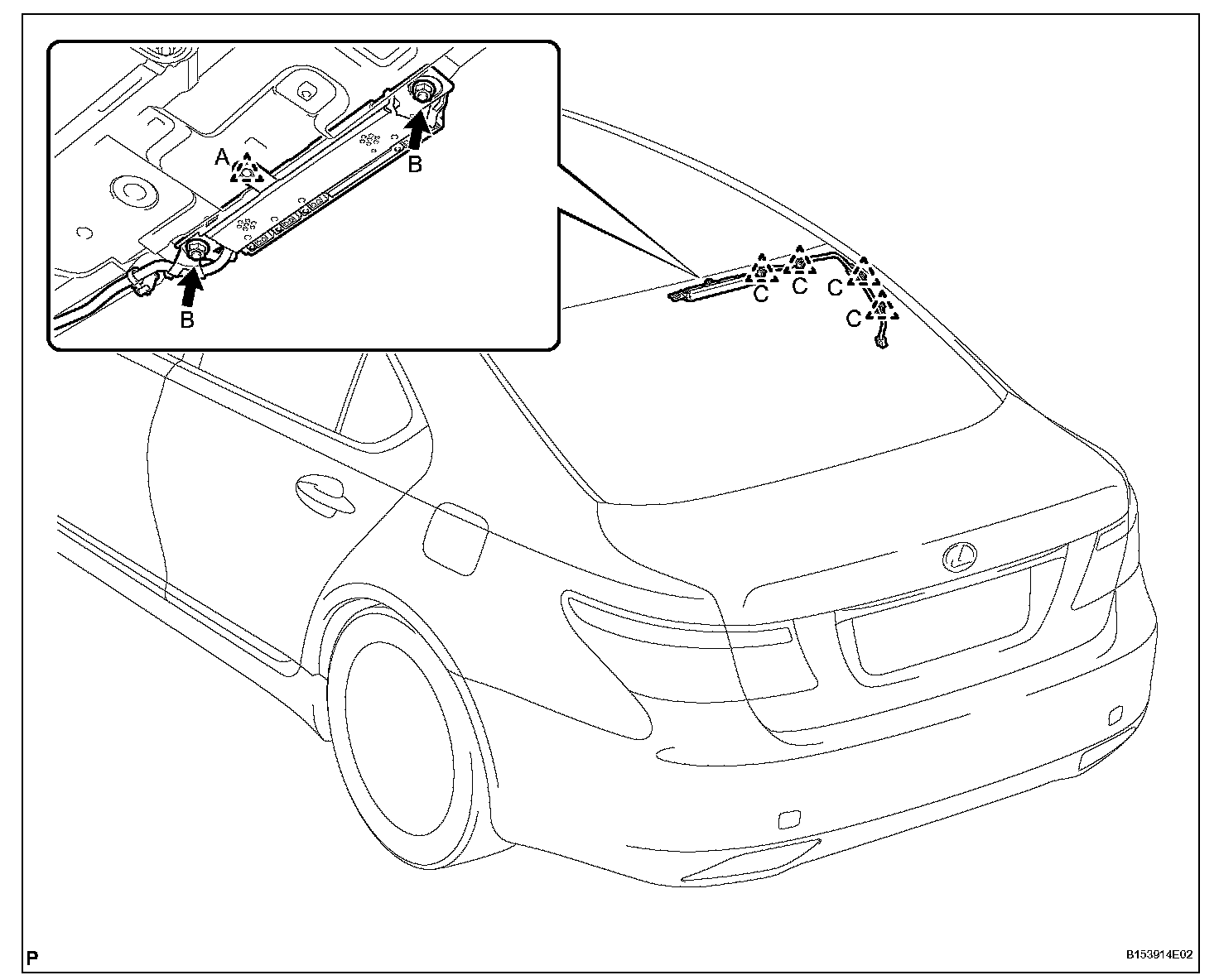 HINT: It is not necessary to completely remove the roof headlining. Slightly lower the rear section of the roof headlining so that the amplifier antenna can be removed.