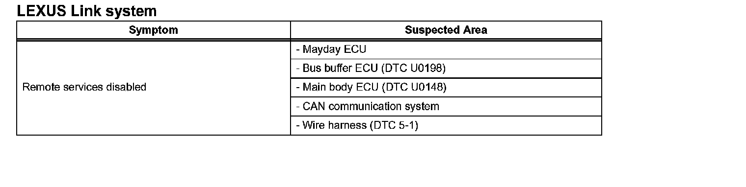 PROBLEM SYMPTOMS TABLEProblem Symptoms Table - LEXUS Link System: