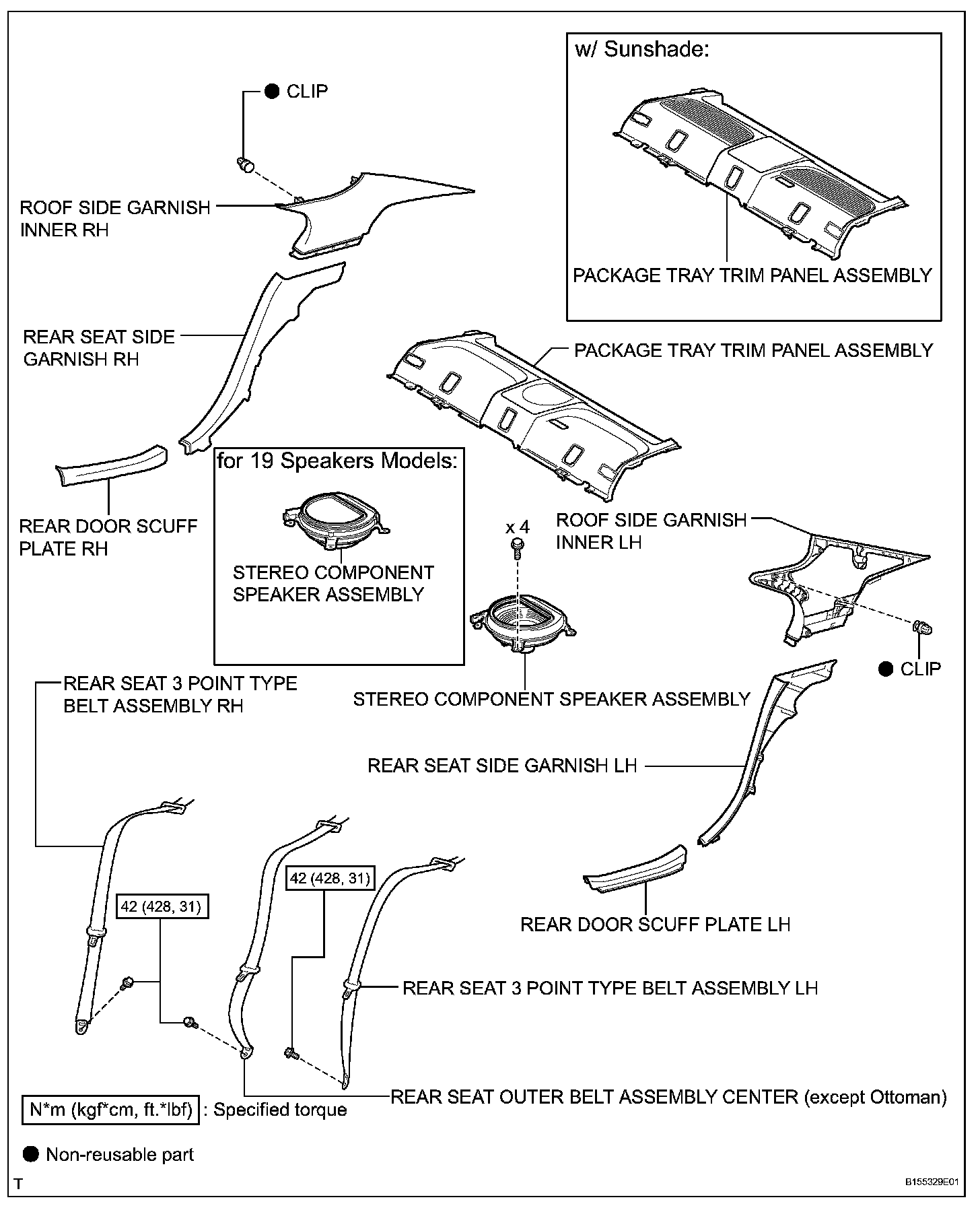 3. INSTALL PACKAGE TRAY TRIM PANEL ASSEMBLY (w/ Sunshade)