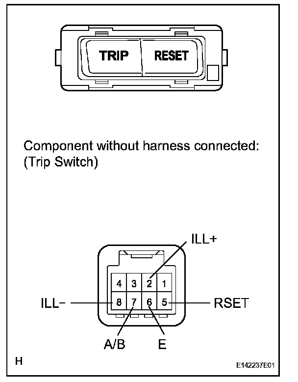 1. Connect the battery positive (+) lead to terminal 2 (ILL+) and the negative (-) lead to terminal 8 (ILL-), then check that the light comes on.