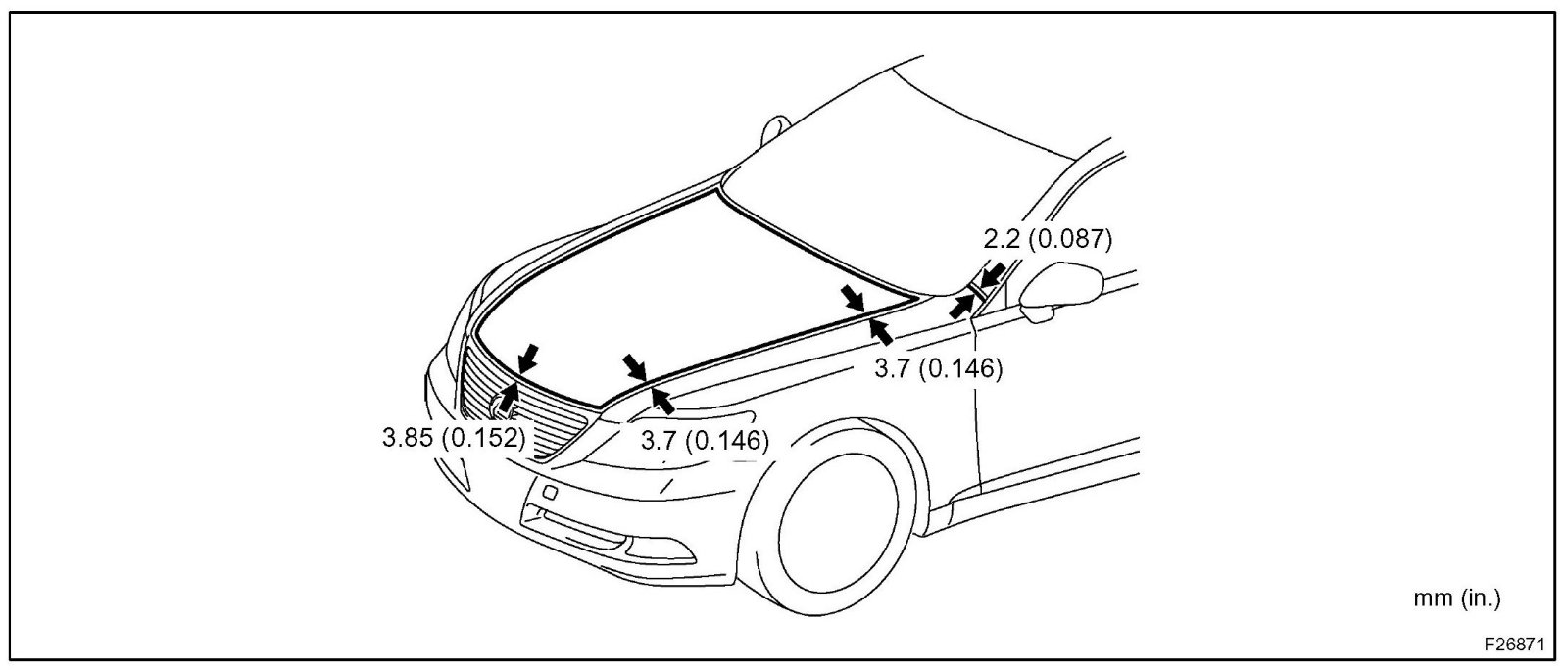 2. Move the hood and adjust the clearance between the hood and front fender.