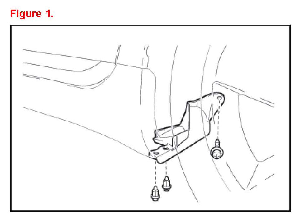 3. Drill 2 pilot holes 3 mm (1/8 inch) on the rocker panel at the location shown.