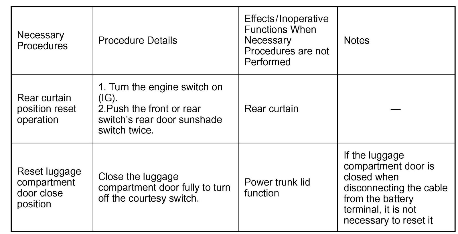 Procedures Necessary When Battery Terminal Is Disconnected/Reconnected