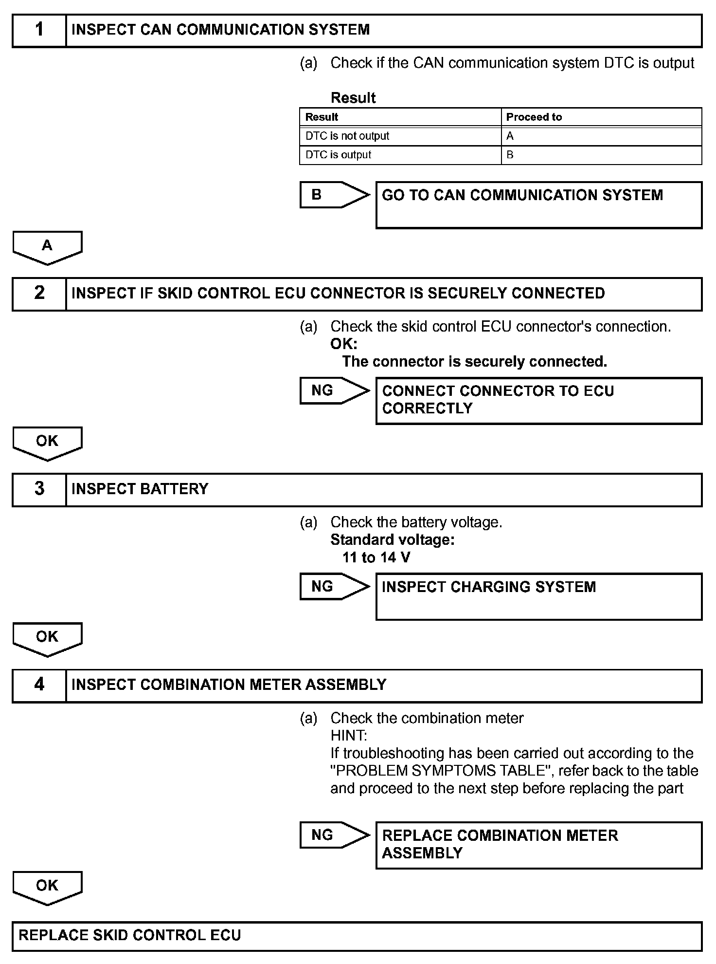 If the ECU stores a DTC, the brake warning light / yellow (minor malfunction) comes on in the combination meter.