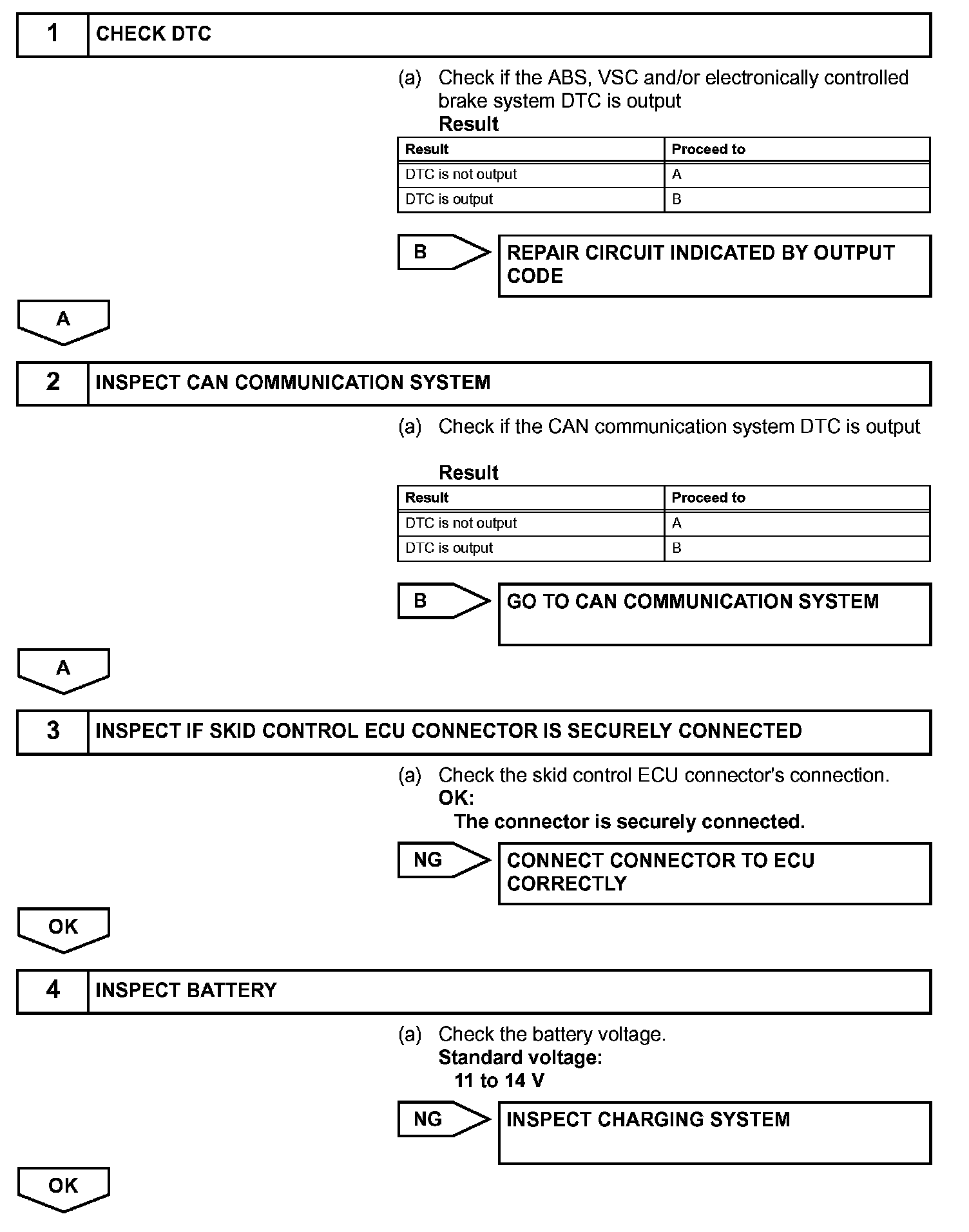 - The skid control ECU connector is disconnected from the skid control ECU.