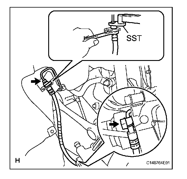 (a) Remove the brake tube with SST while holding the flexible hose with a wrench.