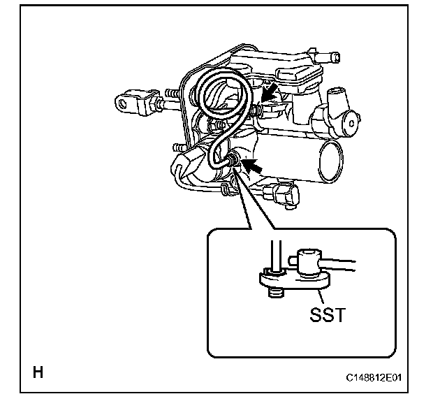 (a) Using SST, connect the brake stroke simulator tube to the brake master cylinder with simulator.