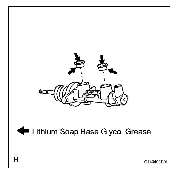 (a) Apply lithium soap base glycol grease to 2 new reservoir grommets and install them to the brake master cylinder with simulator.