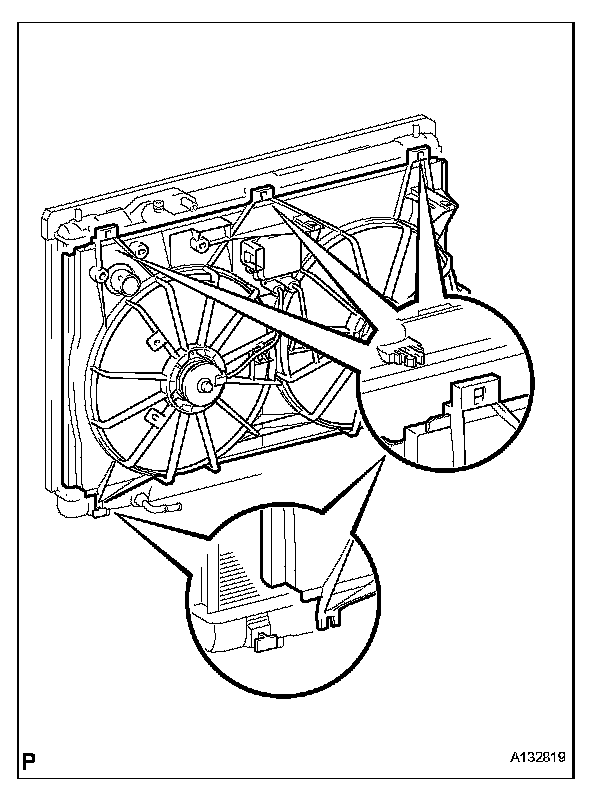 (a) Detach the 3 claws and remove the fan shroud with fan and motor.