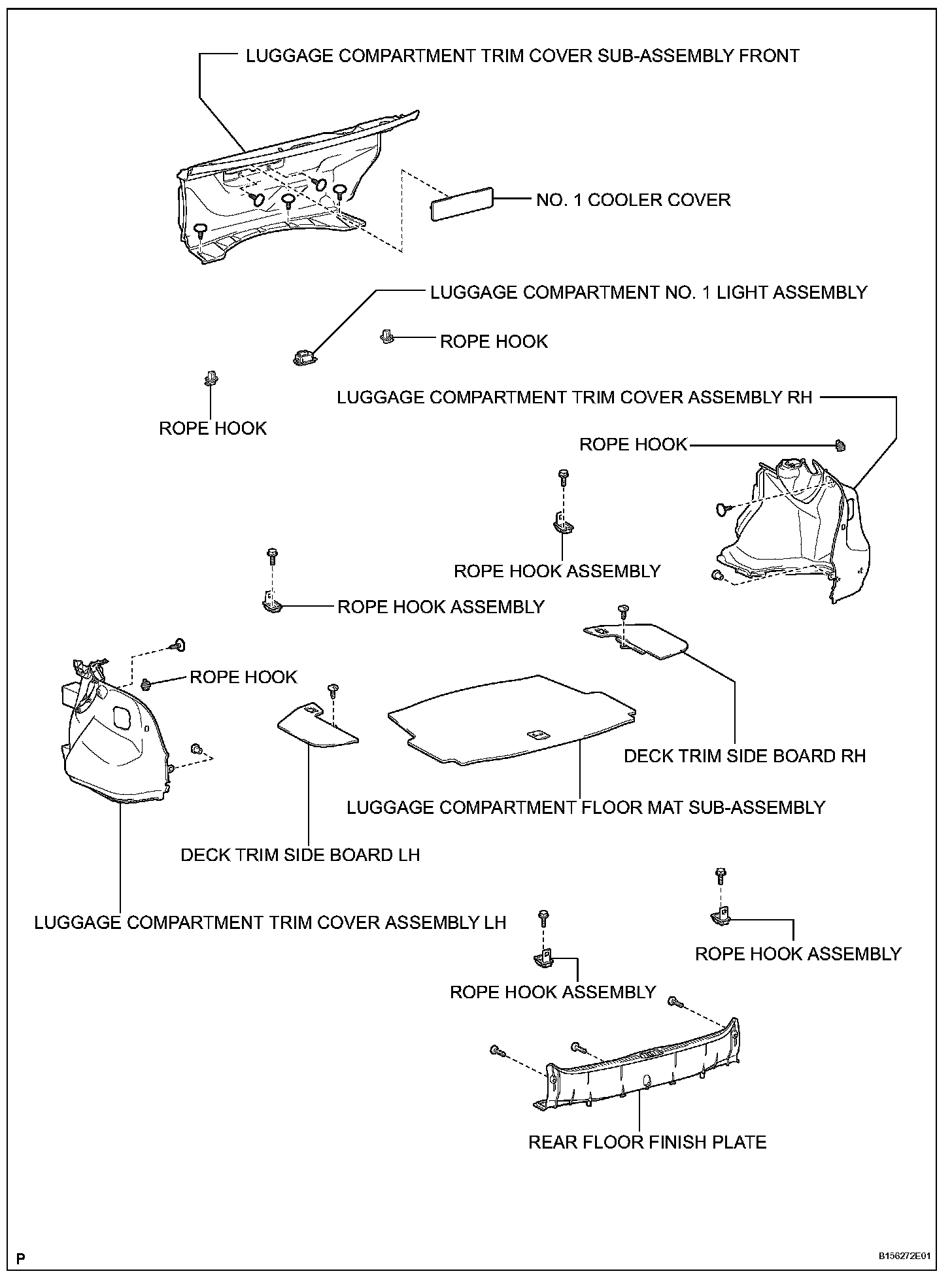 16. REMOVE LUGGAGE COMPARTMENT FLOOR MAT SUB-ASSEMBLY