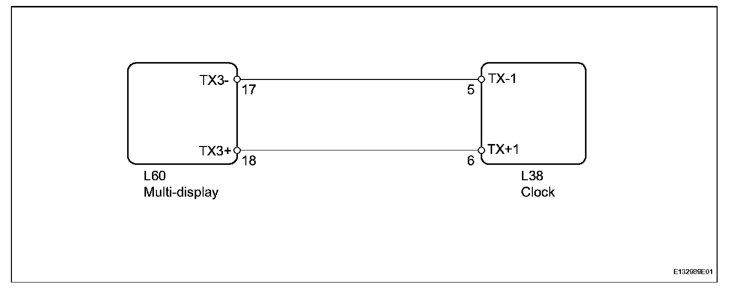 The clock receives light control switch position information and GPS information via the AVC-LAN. When a short to +B or short to ground occurs in this AVC-LAN, the clock system will not function normally as communication is discontinued.