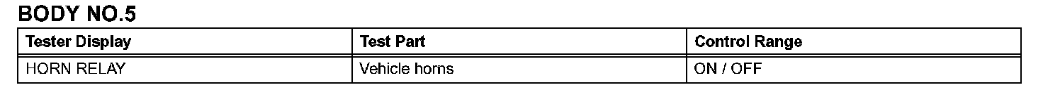 NOTE: When a Body No.5 (front light ECU) related vehicle switch is ON, Active Test items related to the vehicle switch are prohibited (double operation prohibition). Check that the vehicle switches are OFF before performing Active Tests.
