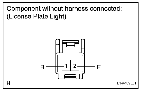 Apply battery voltage to the terminals of the connector, and check the LED illumination condition.