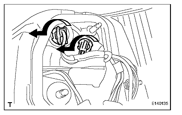 a. Turn the 2 rear turn signal light bulbs in the direction indicated by the arrow and remove them.