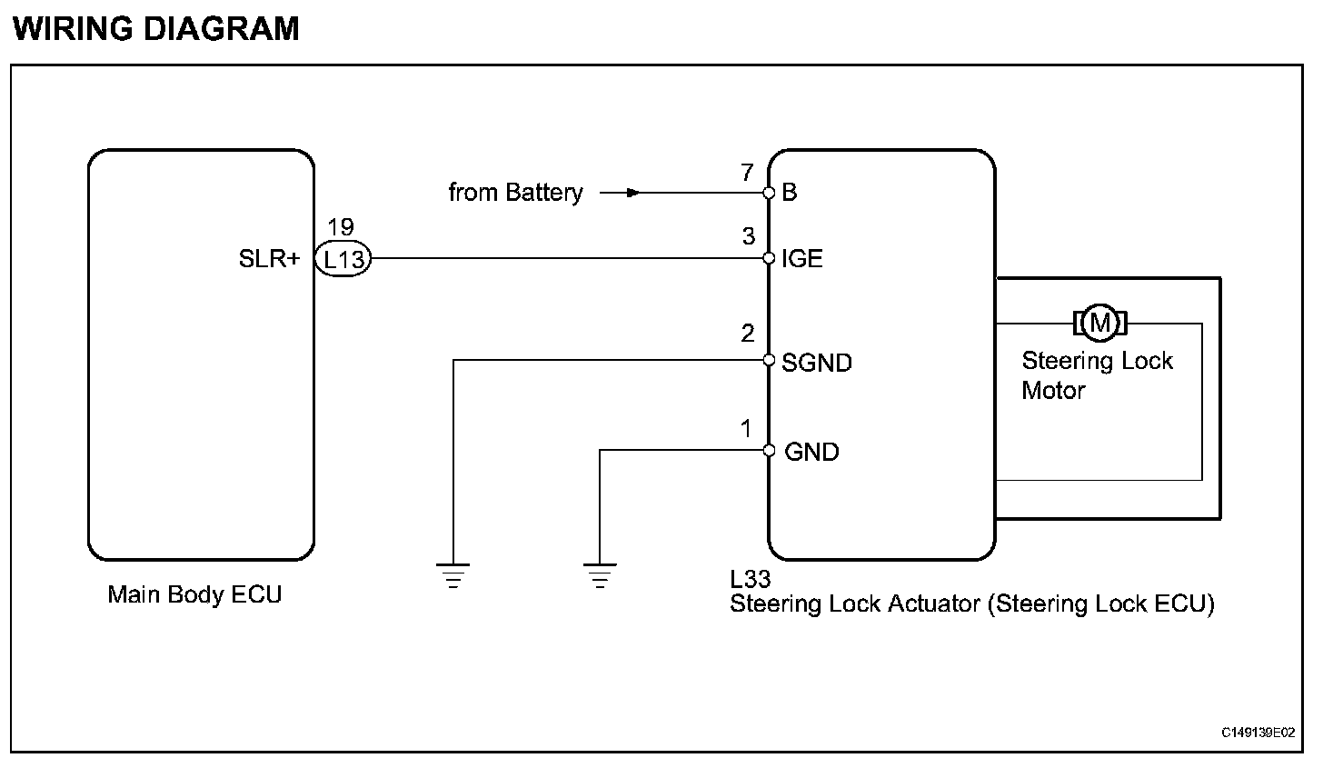 The main body ECU supplies the power to activate the motor of the steering lock actuator.