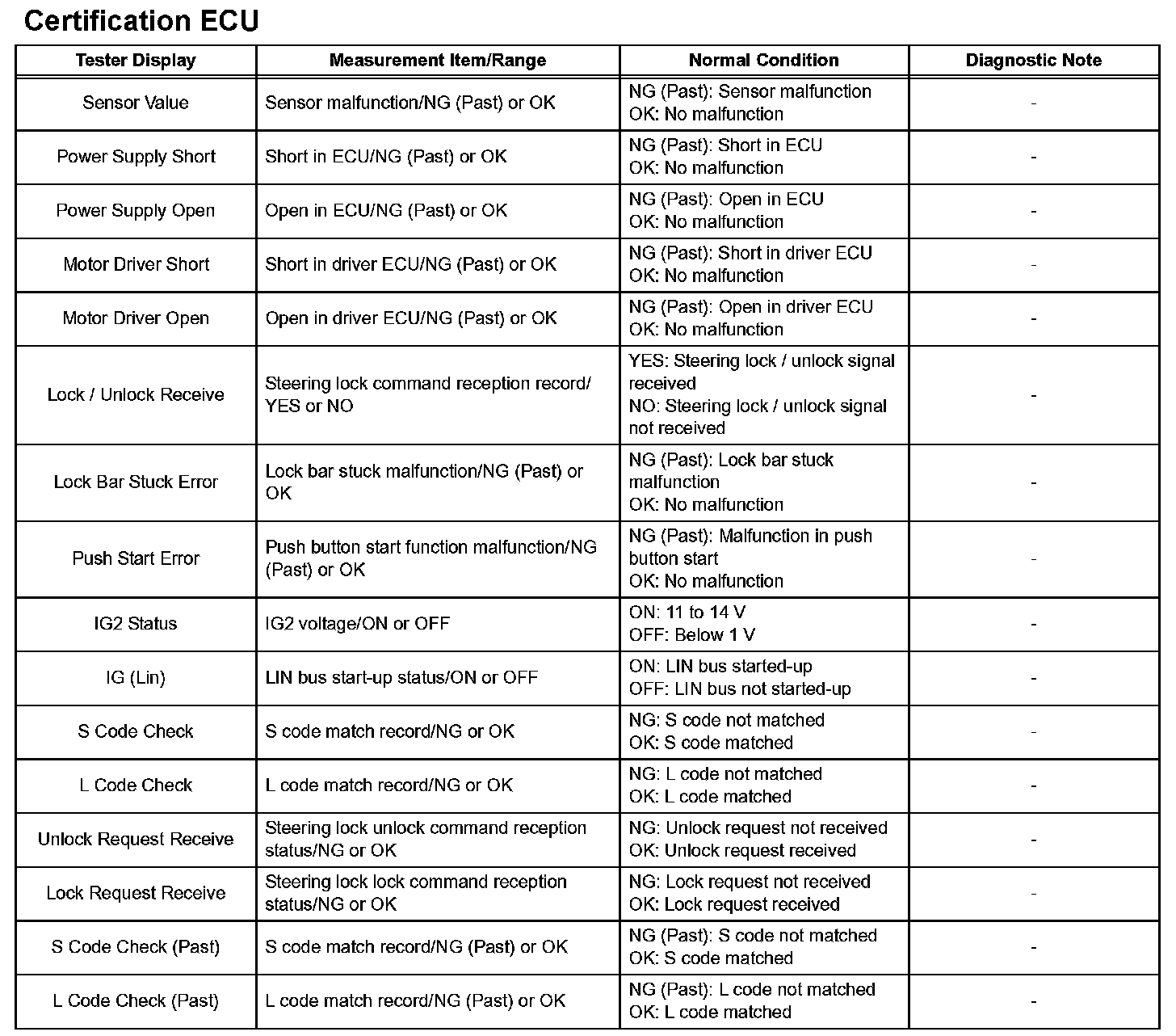 (2) Techstream - Select: Body / Certification ECU / Data List /