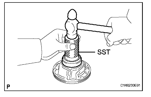 (a) Using SST and a hammer, tap in a new oil seal.