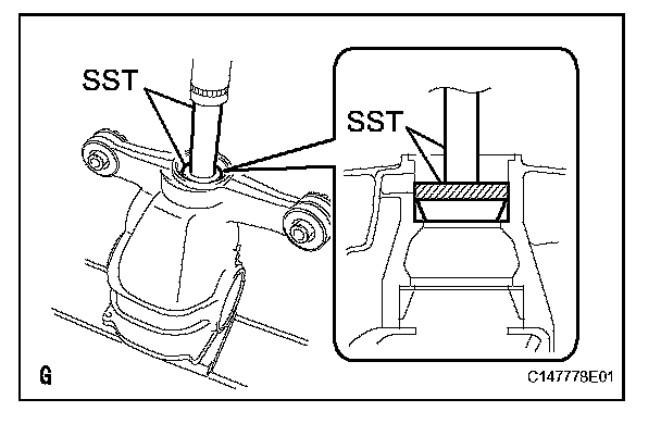 ^ Make sure the press, SST and drive pinion drive are in a straight line when pressing.