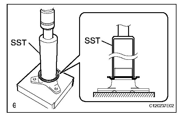 (a) Using SST and a press, press in the rear drive pinion front tapered roller bearing outer race.