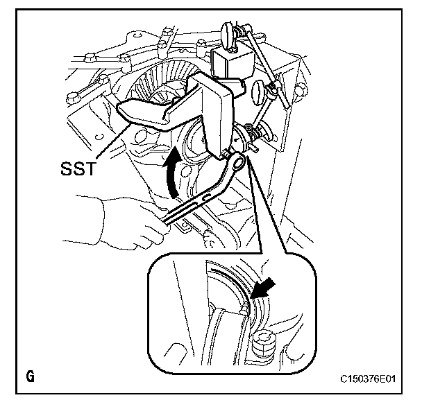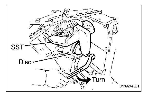 (c) Tighten SST bolt until SST disc lightly touches the case bearing outer race.