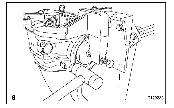 (g) Temporarily tighten the 10 differential case bolts uniformly in several passes, and then tighten them to the torque specification.