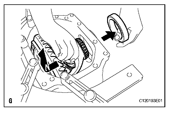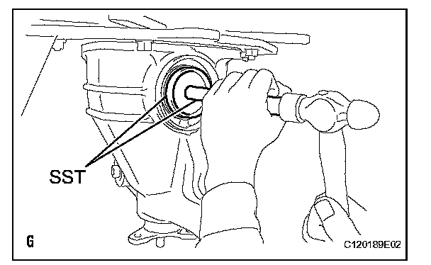 (a) Using SST and a hammer, tap in the ring gear tooth side case bearing outer race.