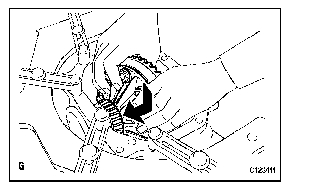 NOTICE: Do not damage the case bearing inner race or ring gear.