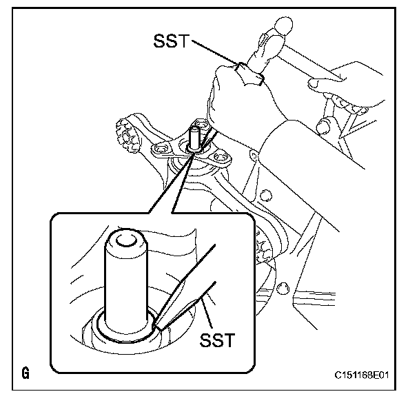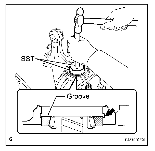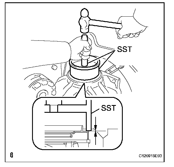 (a) Using SST and a hammer, tap in a new oil seal.