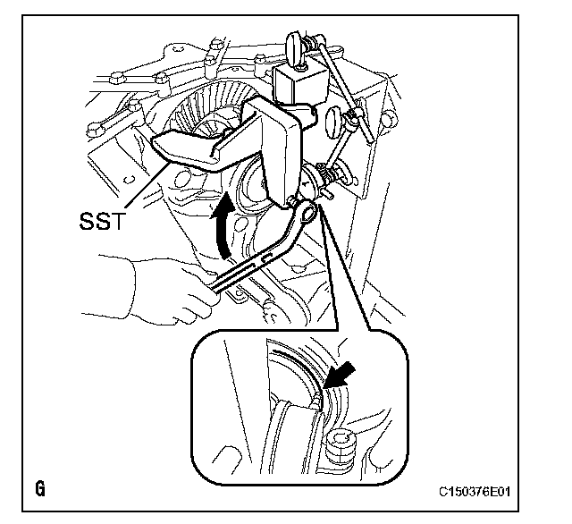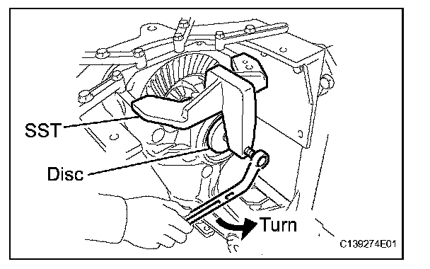 (c) Tighten SST bolt until SST disc lightly touches the case bearing outer race.