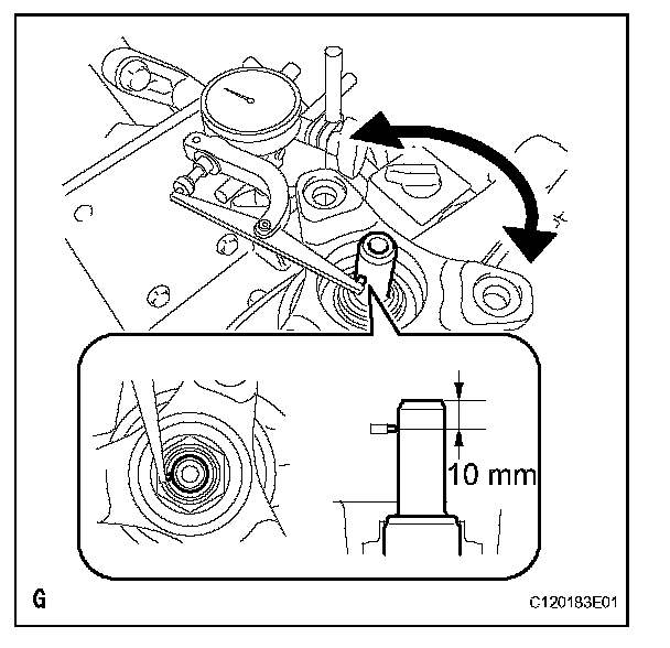 (a) Using a dial indicator, measure the runout of the drive pinion shaft at a position 10 mm (0.39 in.) from the end of the shaft.