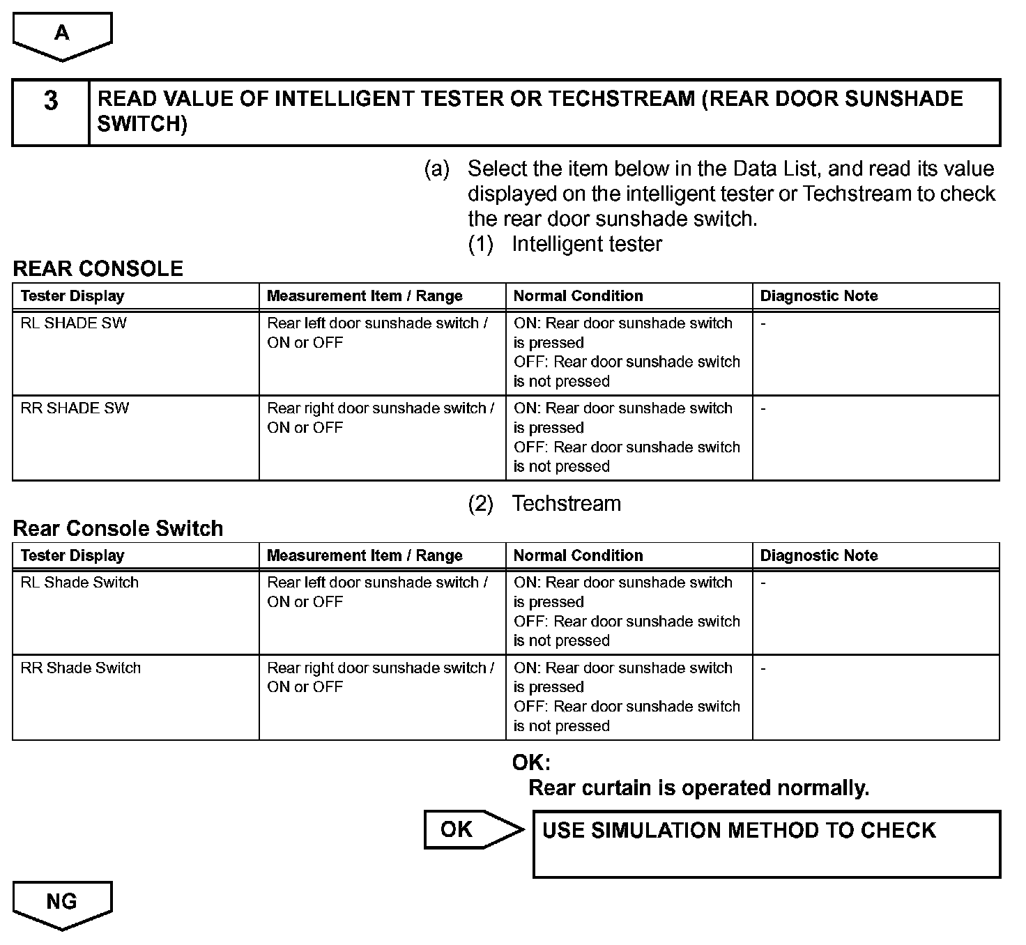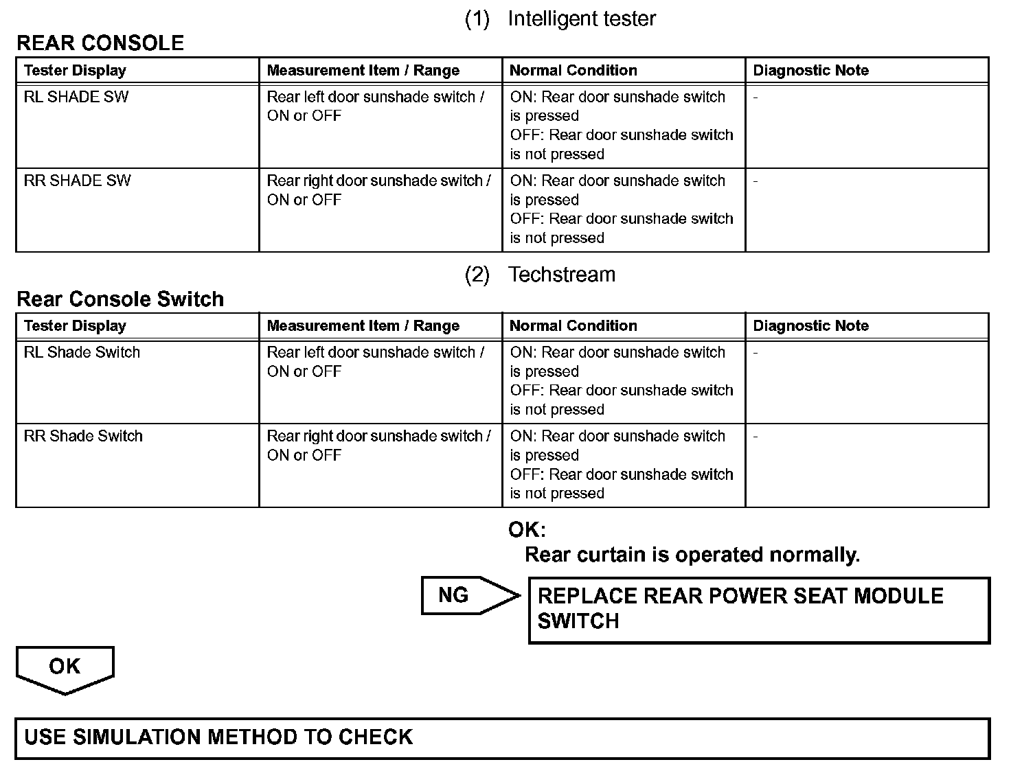 A rear door sunshade switch signal is sent from the rear power seat module switch to the rear door ECUs through CAN communication, and the rear curtains operate.