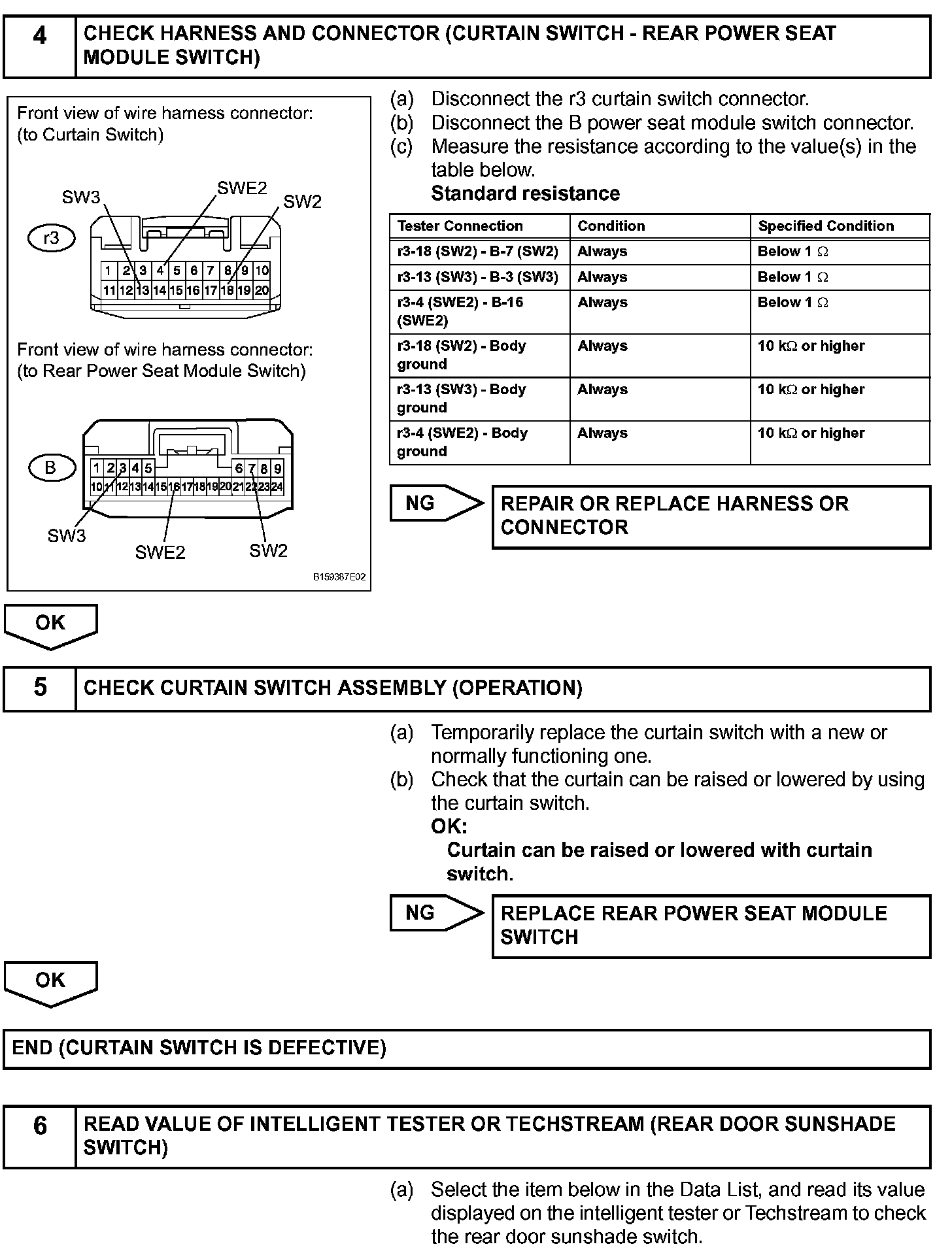 Rear Switch Cannot Operate Right and / or Left Door Sunshade