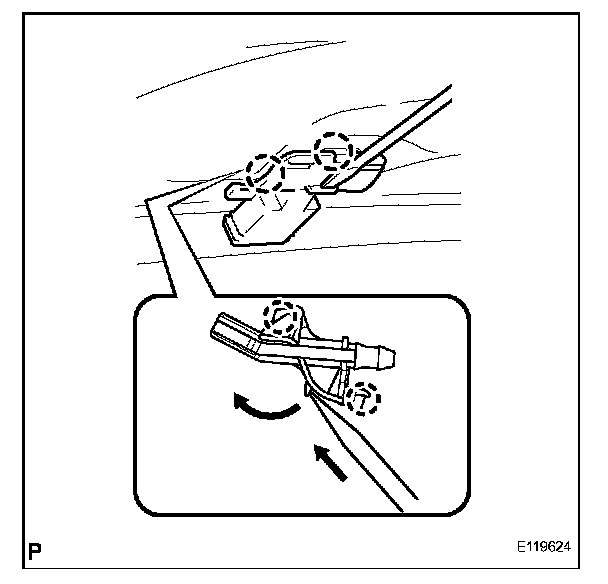 a. Using a screwdriver, disengage the 2 claws and separate the washer nozzle.