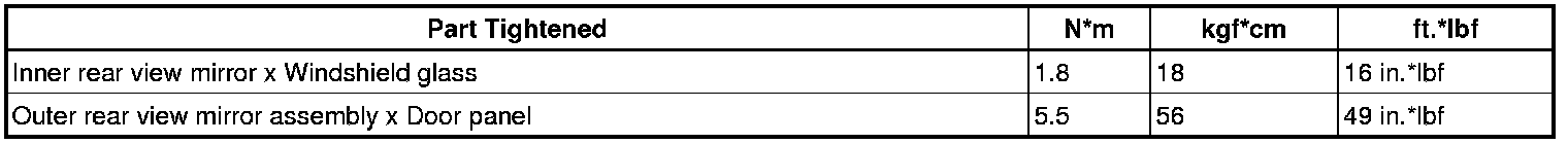 SERVICE SPECIFICATIONS: MIRROR: TORQUE SPECIFICATIONS