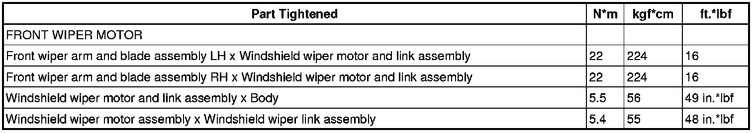 SERVICE SPECIFICATIONS: WIPER AND WASHER: TORQUE SPECIFICATIONS