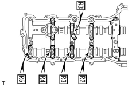 (c) Confirm the marks and numbers on the camshaft bearing caps and place them in their proper positions and directions.