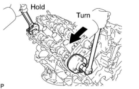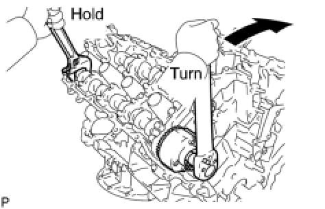 (b) Rotate the keyway part of the camshaft timing gear assembly's eccentric shaft by hand.