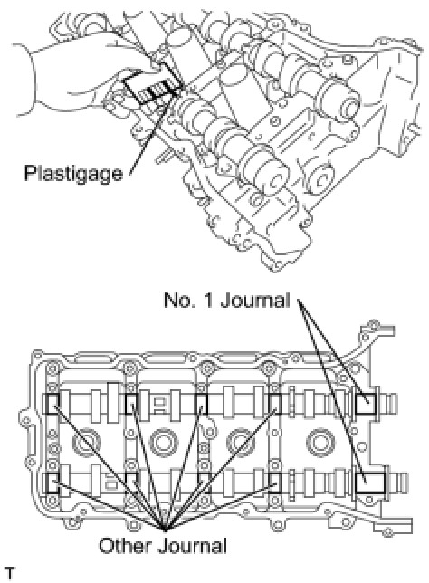 (c) Lay a strip of Plastigage across each of the camshaft journals.