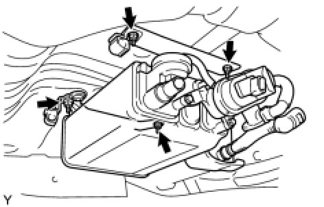 (c) Remove the 4 nuts, 2 spacers and charcoal canister assembly.